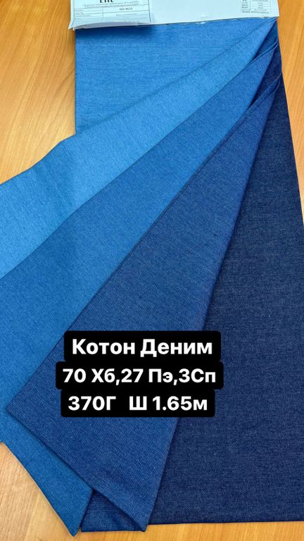 Рулоны по 50м. Состав: 70% хлопок, 27% полиэстер, 3% спандекс. Плотность 370г/м.